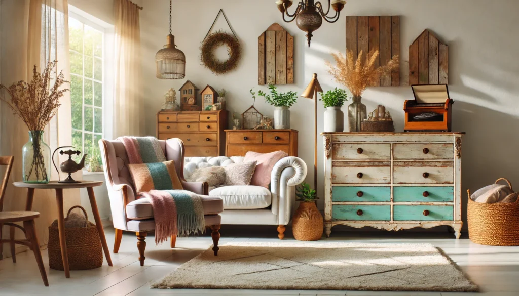 O segredo é o equilíbrio. Não é necessário encher o ambiente com móveis antigos — um ou dois já bastam para criar contraste e personalidade.