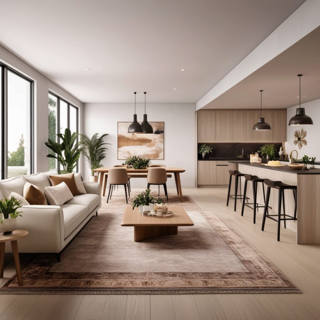 Tapetes são excelentes aliados na decoração de ambientes integrados. Eles ajudam a separar visualmente áreas como sala de jantar e sala de estar, sem precisar erguer paredes.