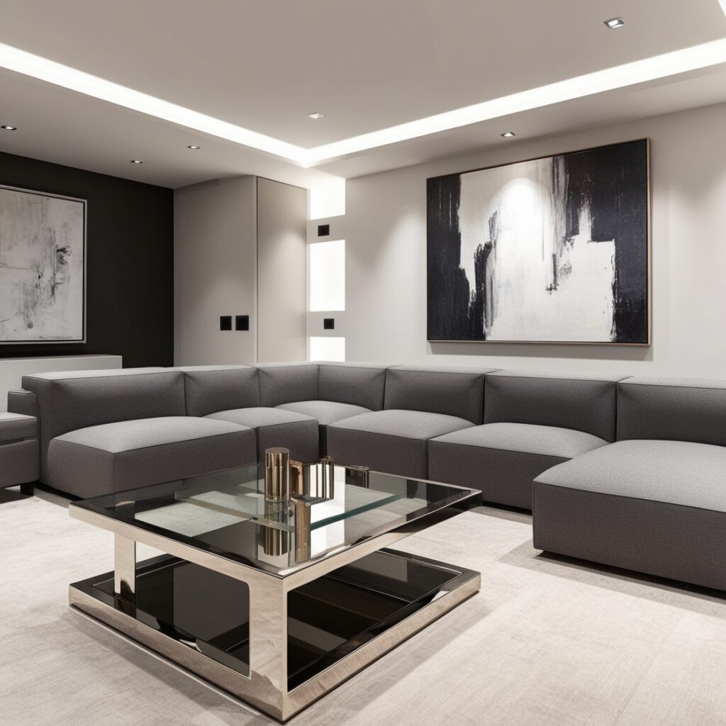 O design moderno é marcado por linhas retas e formas geométricas. Móveis e objetos decorativos seguem uma estética clean, sem excessos de ornamentos.