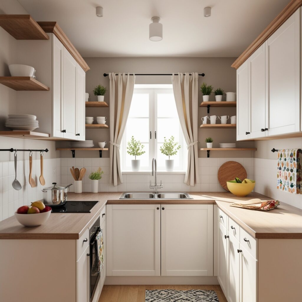 Se a cozinha é pequena, use cada centímetro com inteligência. Armários até o teto, mesas dobráveis e nichos organizadores ajudam a ganhar espaço. Além disso, cores claras e espelhos contribuem para a sensação de amplitude.